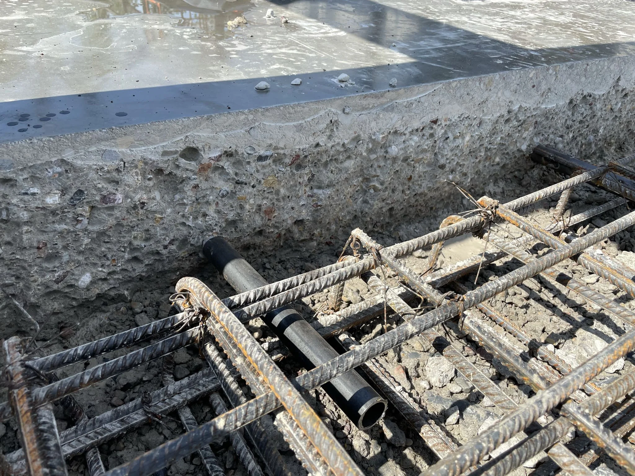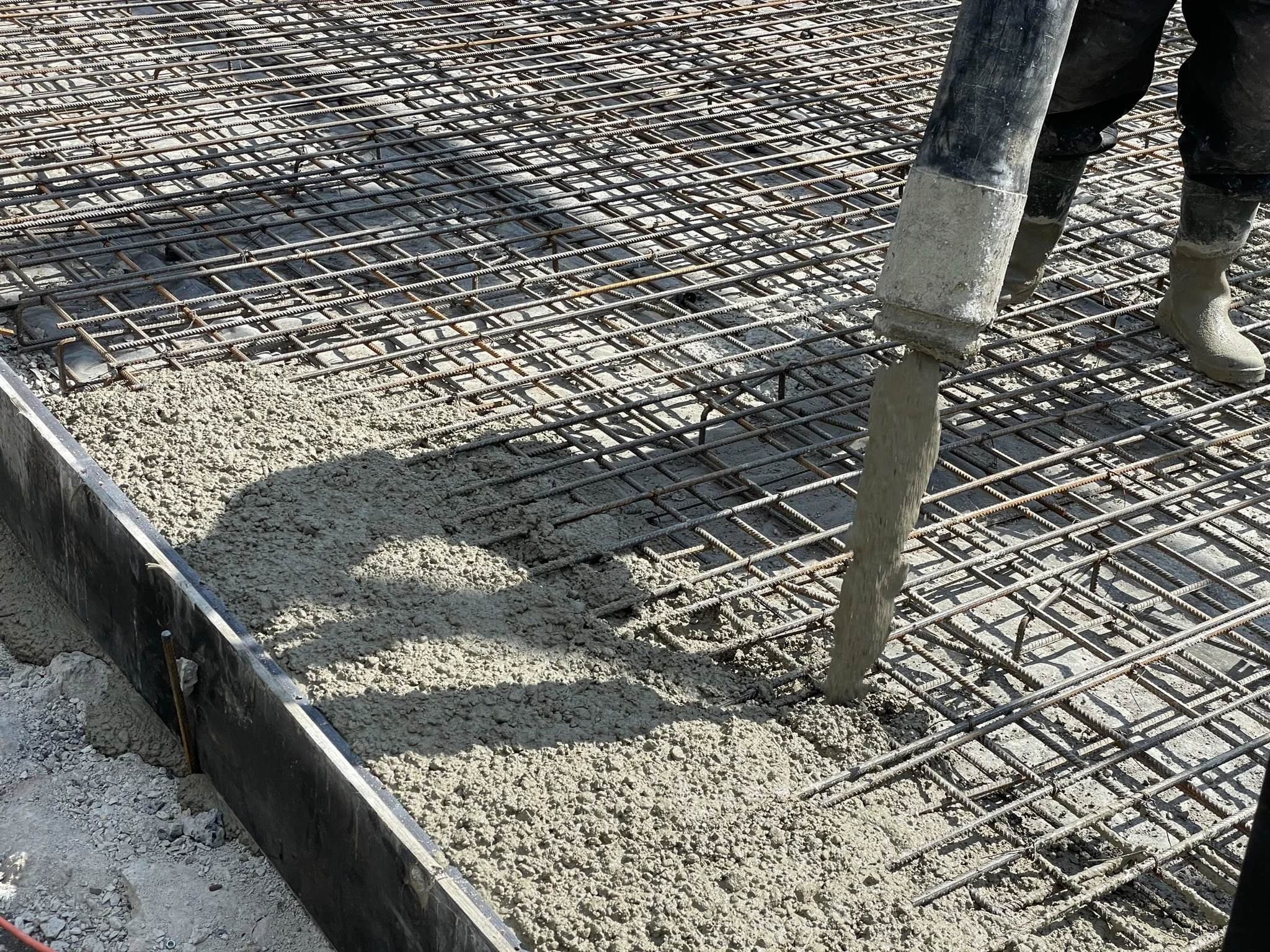 - Заливка бетонного раствора: равномерное распределение, уплотнение виброрейкой для прочности;