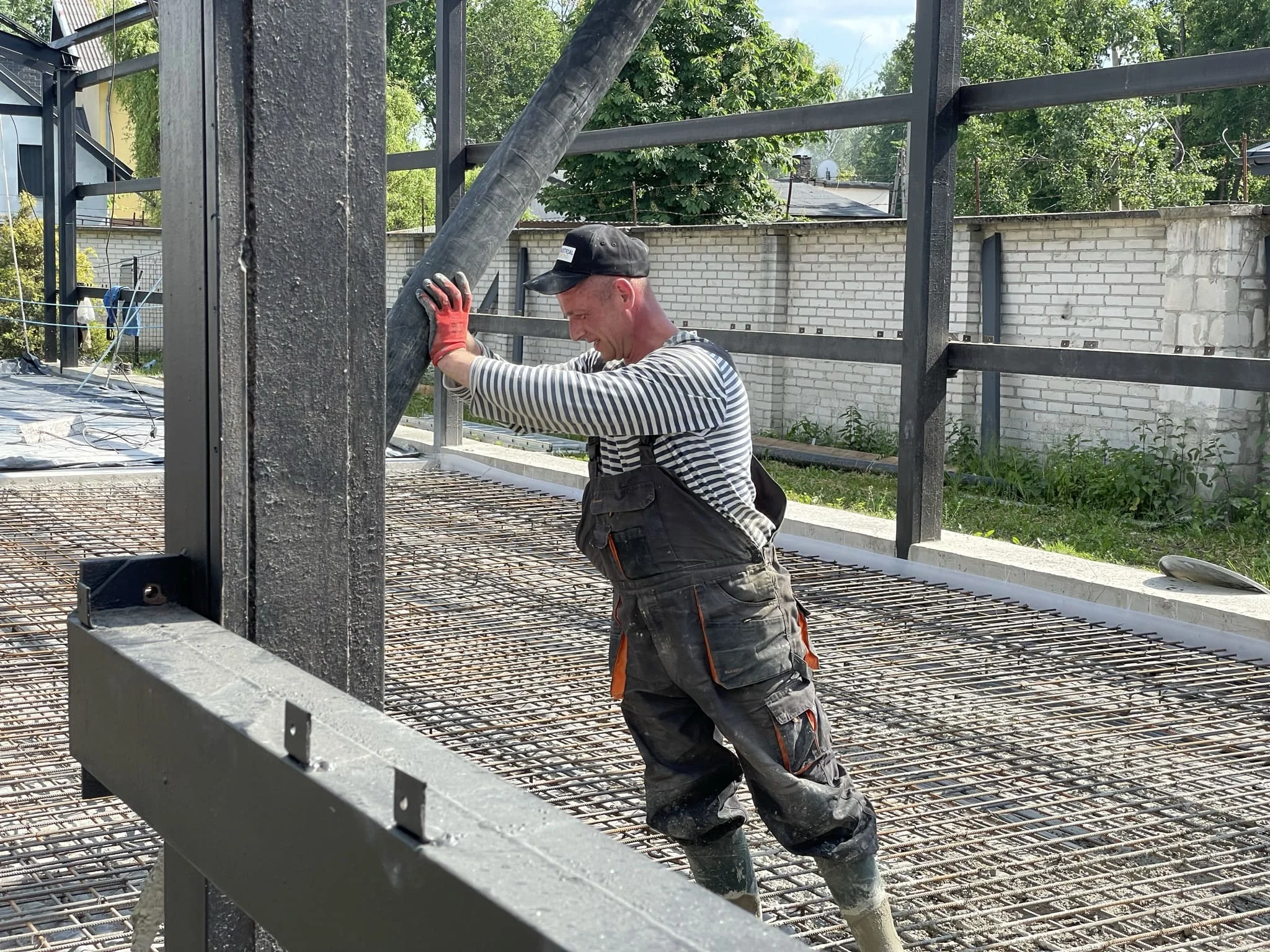 - Армирование и установка опалубки: распределение нагрузки по всей площади, предотвращение трещин;