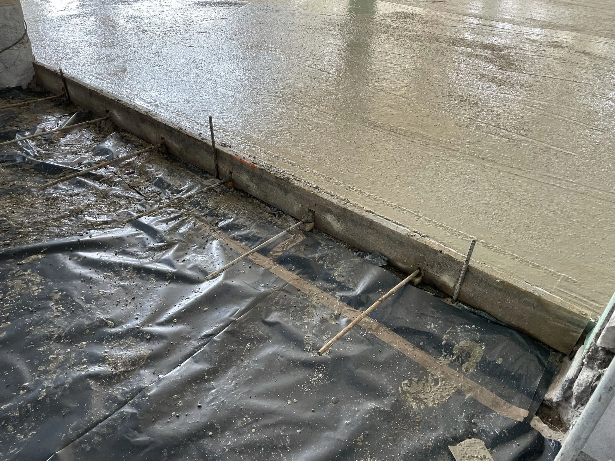 - Заливка бетонного раствора нужной марки: по заданной толщине и с контролем уровня;