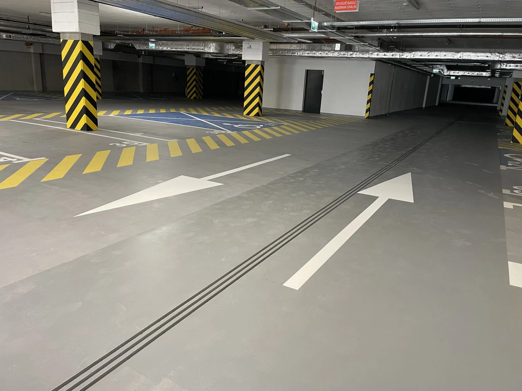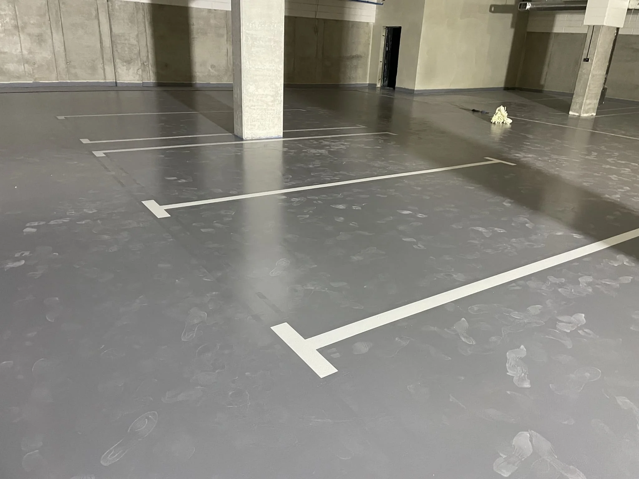 - Подготовка основания - обеспыливание, ремонт дефектов, шлифовка, при необходимости фрезеровка бетона и обеспыливание.